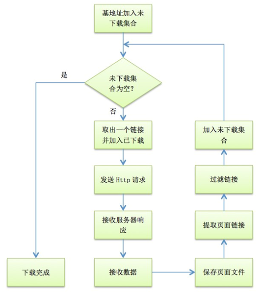 每次开始时都检查未下载的集合,如果已经为空,说明已经下载完毕;如果还有URL,那么就取出第一个URL加入到已下载的集合中,并且下载这个URL的资源。
