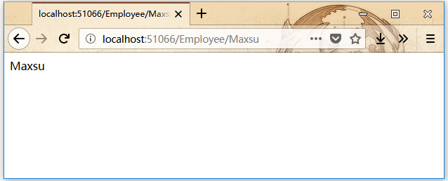 server.htmlencode将简单地转换任何形式的纯文本恶意脚本。当上面的代码被编译并执行并请求以下url:http://localhost:51066/employee/maxsu时,将得到以下输出。参考下图所示 -