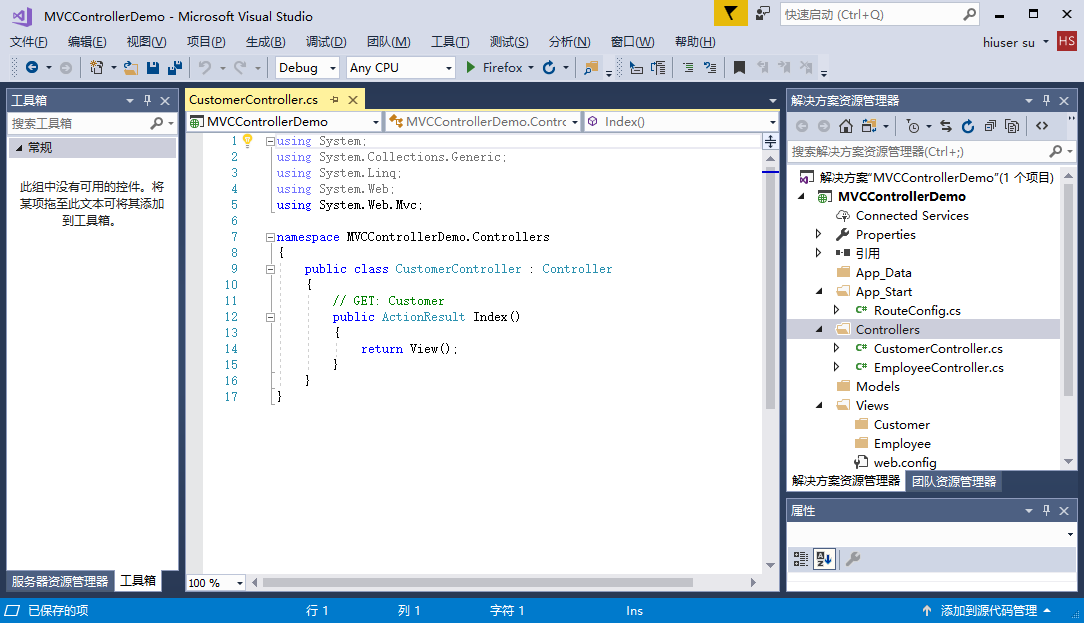 也可以重定向到同一控制器的操作,甚至是不同的控制器。以下是一个简单的例子,将通过使用以下代码更改homecontroller中的代码,从homecontroller重定向到customercontroller。