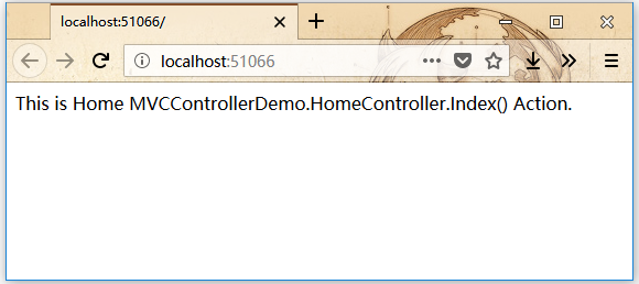 return "this is home mvccontrollerdemo.homecontroller.index() action.";