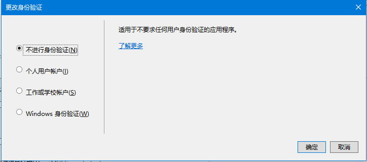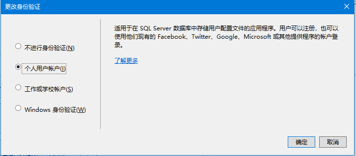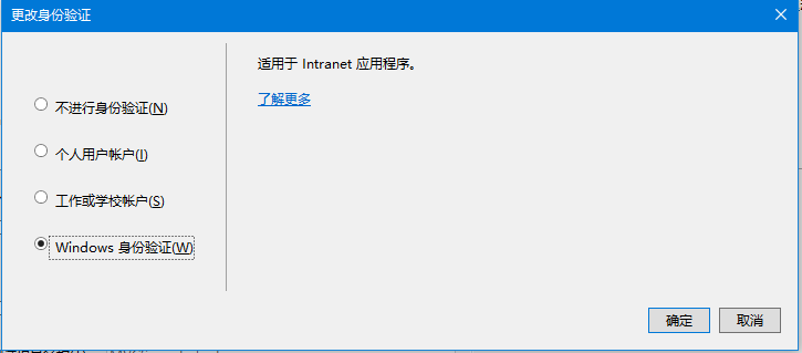 第四个选项是windows身份验证 ,适用于intranet应用程序。