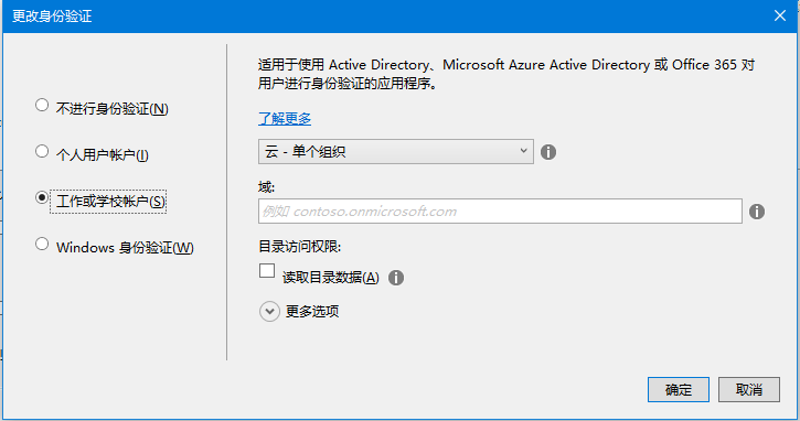 第三个选择是使用组织帐户,这通常用于使用活动目录联合服务的业务应用程序。