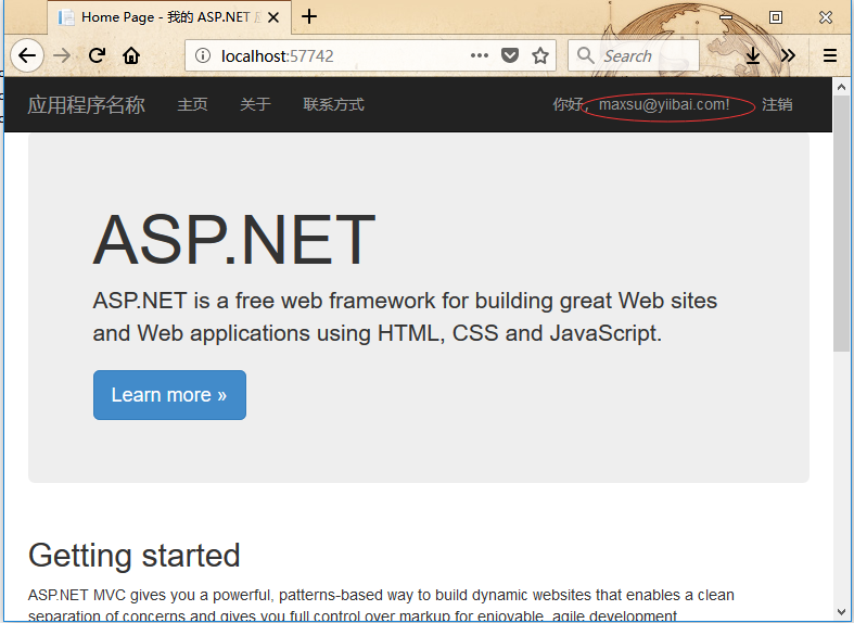 现在运行这个应用程序,当您第一次访问这个应用程序,那么是以一个匿名用户来访问的。