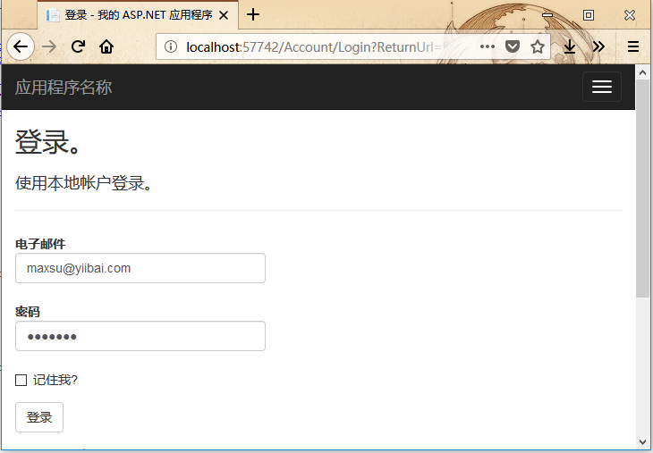 现在再次运行这个应用程序,并指定相同的url:http://localhost:57742/secret/secret。 mvc应用程序将检测到您无权访问应用程序的特定区域,并且会自动重定向到登录页面,在那里登录并尝试返回访问受限的应用程序的url。