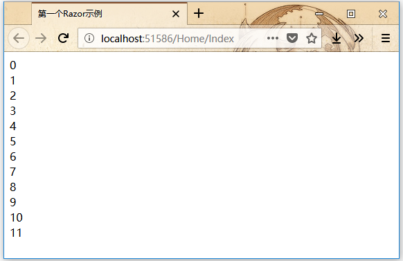 创建一个for循环,在大括号内指定@index,这实质上是告诉 razor 存储变量index的值。