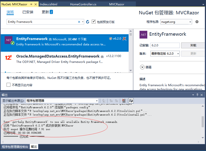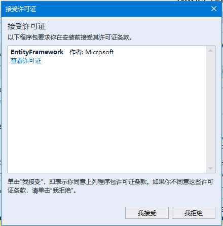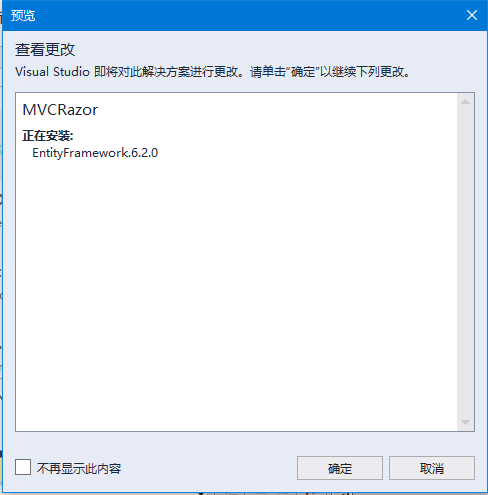 当安装了实体框架,将看到如上所示的消息。