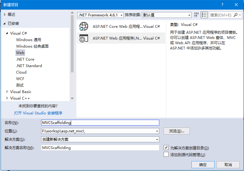 第4步 - 在名称字段中输入项目名称:mvcscaffolding ,然后单击确定 继续。