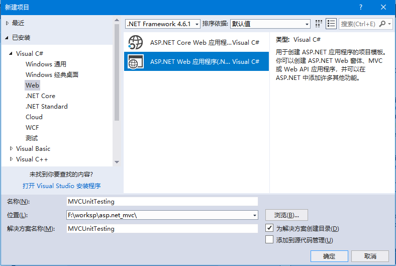我们来看一个单元测试的简单例子,在这个例子中使用单元测试选项来创建一个新的asp.net mvc应用程序。