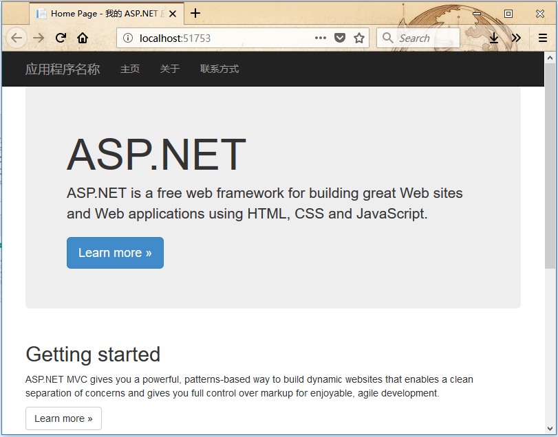 @html.actionlink("应用程序名称", "index", "home", new { area = "" }, new { @class = "navbar-brand" })