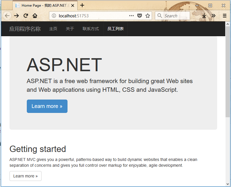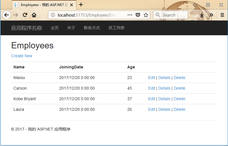 现在需要添加一个链接到employees列表,打开views/shared 文件夹下的_layout.cshtml 文件,并在联系人 链接下面添加员工列表 链接。