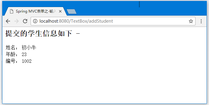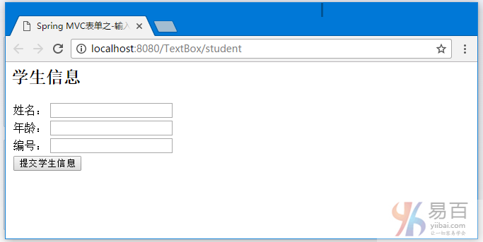 现在启动tomcat服务器,并尝试url => http://localhost:8080/textbox/student, 如果spring web应用程序的没有问题,应该看到以下结果: