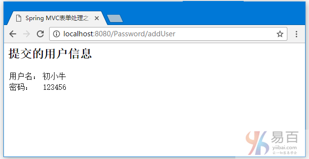 提交所需信息后,点击提交按钮提交表单。 如果spring web应用程序没有问题,应该看到以下结果: