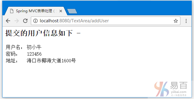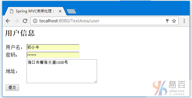 <title>spring mvc表单处理(文本域)</title>