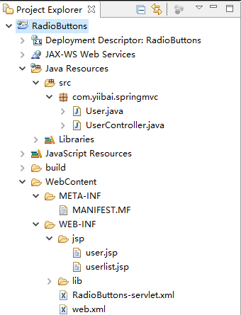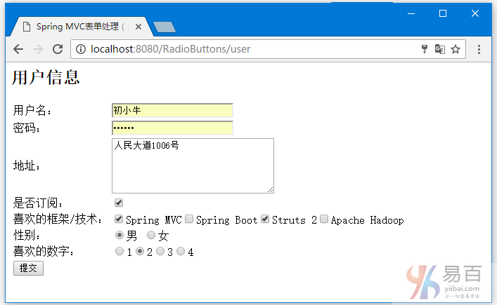 现在启动tomcat服务器,现在尝试访问url => http://localhost:8080/radiobuttons/user ,如果spring web应用程序没有问题,应该看到以下结果: