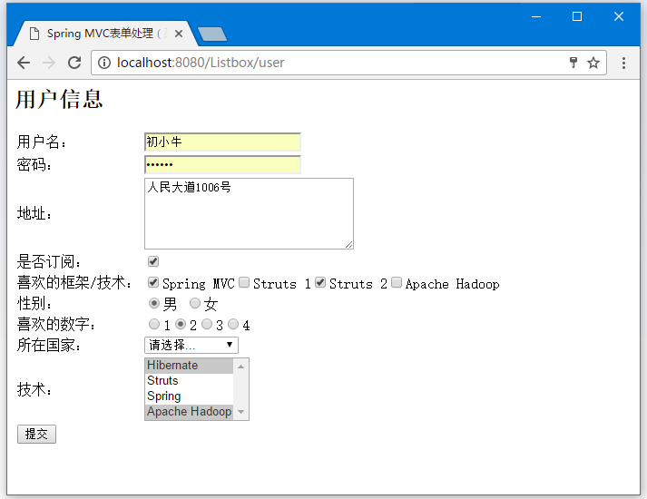<title>spring mvc表单处理(列表框)</title>