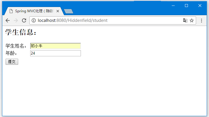 现在启动tomcat服务器,现在尝试访问url => http://localhost:8080/hiddenfield/student ,如果spring web应用程序没有问题,应该看到以下结果: