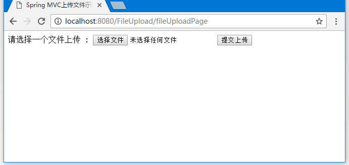 现在启动tomcat服务器,现在尝试访问url => http://localhost:8080/fileupload/fileuploadpage ,如果spring web应用程序没有问题,应该看到以下结果: