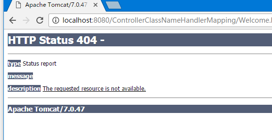 当访问url => http://localhost:8080/controllerclassnamehandlermapping/welcome.html , 如果spring web应用程序没有问题,因此没有匹配此请求url, 应该会看到以下结果: