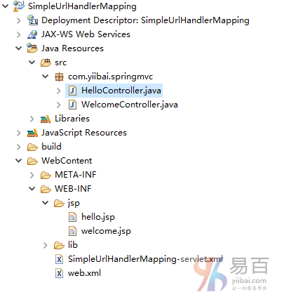 simpleurlhandlermapping-servlet.xml 的代码如下所示 -