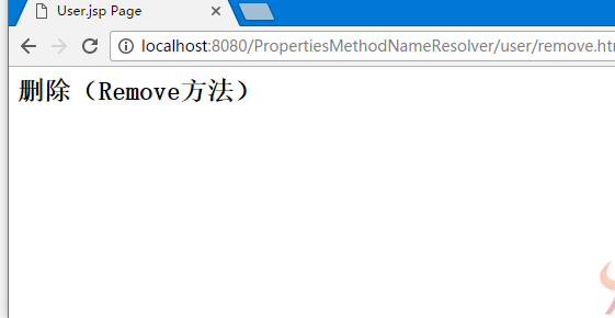 当访问url => http://localhost:8080/propertiesmethodnameresolver/user/remove.html , 如果spring web应用程序没有问题,应该看到以下结果:
