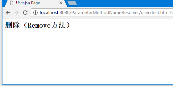 当访问url => http://localhost:8080/parametermethodnameresolver/user/test.html?action=remove , 如果spring web应用程序没有问题,应该看到以下结果: