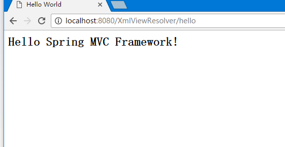 现在启动tomcat服务器,当访问url => http://localhost:8080/xmlviewresolver/hello , 如果spring web应用程序没有问题,应该看到以下结果: