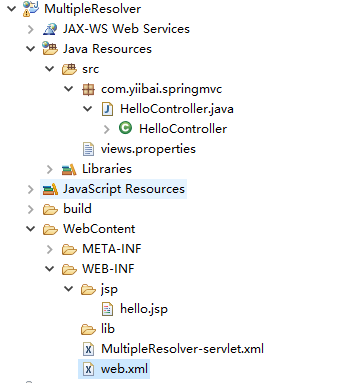 multipleresolver-servlet.xml 配置如下所示 -