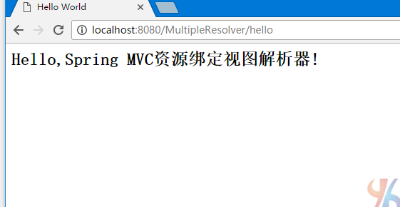 现在启动tomcat服务器,当访问url => http://localhost:8080/multipleresolver/hello , 如果spring web应用程序没有问题,应该看到以下结果: