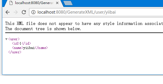 现在启动tomcat服务器,当访问url => http://localhost:8080/generatexml/user/h3 , 如果spring web应用程序没有问题,应该看到以下结果: