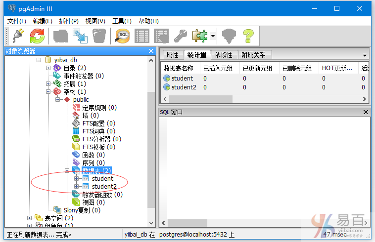 在sql编辑器中编写以下sql语句,来创建另一个表:student2 -
