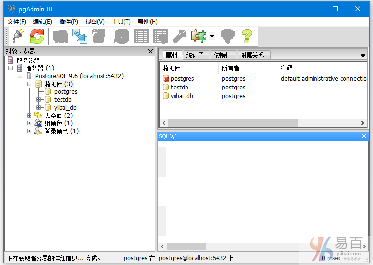 打开pgadmin并将postgresql连接到本地主机服务器。点击加号图标展开数据库。