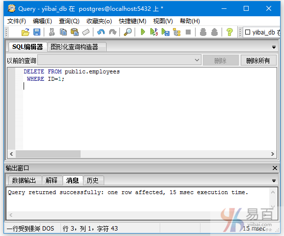 从“employees”中删除“id”为1的记录。执行以下查询语句: