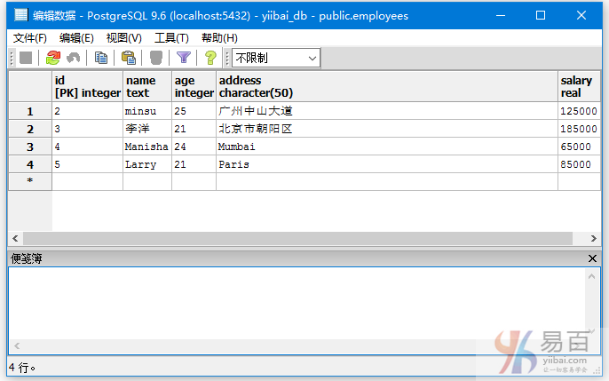 查询employees的数据记录,可以看到id为1的记录已经被删除了 -