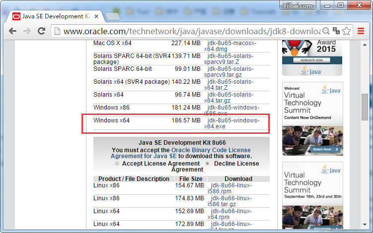应该检查你的操作系统是32位或64位的,并下载相应的jdk版本(我的是 64bit 的电脑)。