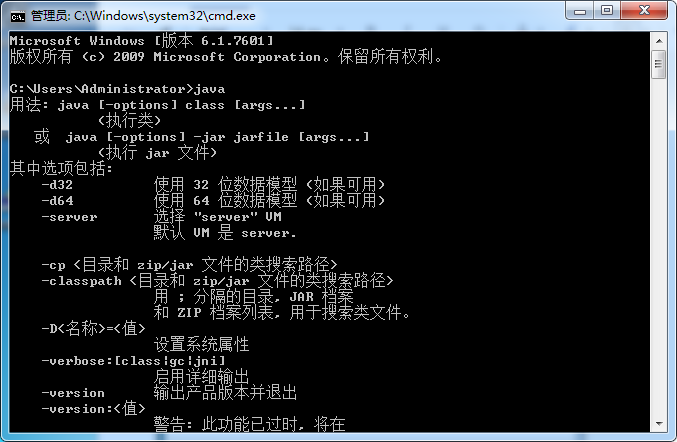 点击”确定“,在命令行上输入:java 后,显示结果如下: