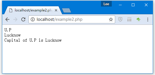 在上面的例子中,我们为变量x赋值一个值:”u.p“ , 引用变量$$x的值被指定为lucknow。