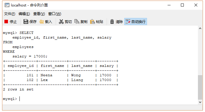 可以使用limit子句获取具有最高或最低值的前n行。 例如,以下声明获得薪资最高的前五名员工。