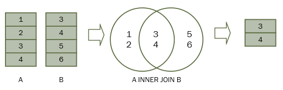 当表a使用内部联接与表b连接时,我们得到结果集(3,4),它是表a和表b的交集。