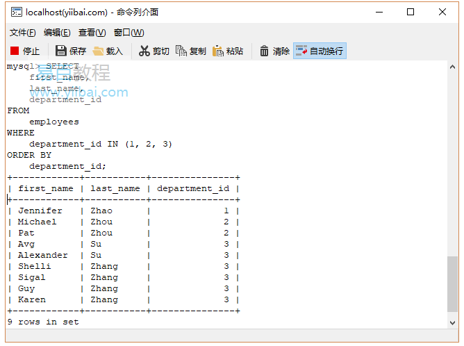 请注意,在where子句中使用in运算符来获取department_id为1,2和3的行。