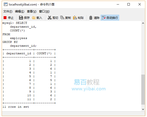 要获取employees表中的行数,请使用count(*)函数,如下所示: