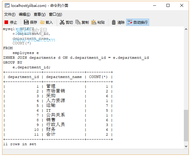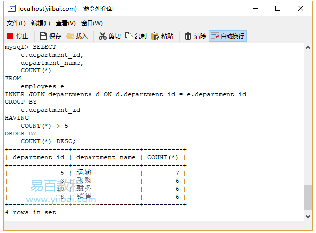 要在结果集中获取部门名称,需要将employees表与departments表内连接,如下所示: