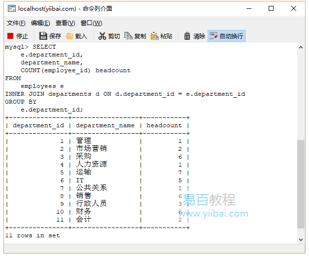 我们将使用示例数据库中的employees和departments表来演示group by子句的工作方式。