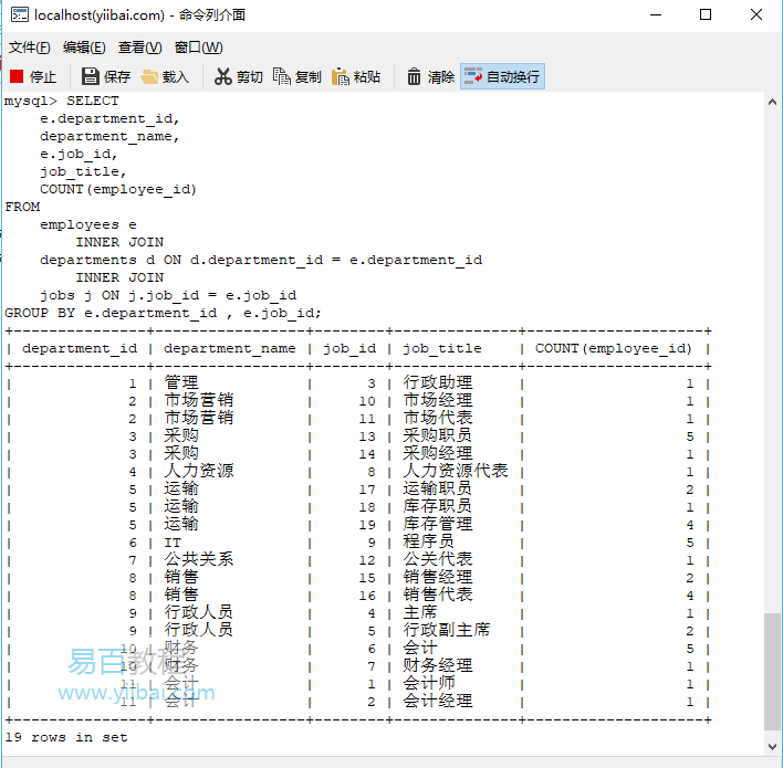 此子句将在一个组的department_id和job_id列中为所有具有相同值的员工进行分组。