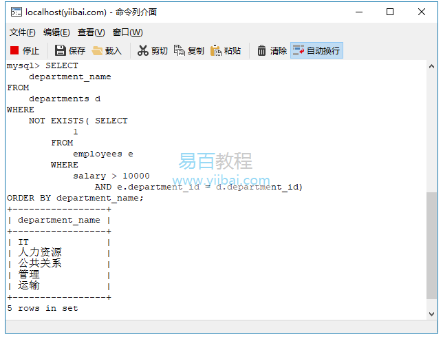 同样,以下语句查找所有没有薪水大于10000的员工的部门: