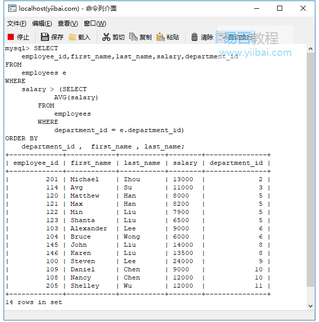 以下查询查找薪水高于其部门员工平均薪水的所有员工: