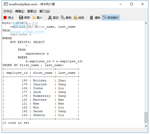 执行上面查询语句,得到以下结果:
