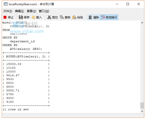 以下语句使用avg()函数和group by子句来查找每个部门的平均工资:
