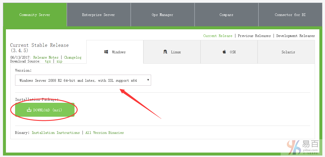 如上所示,这里 windows 版本是 64位的操作系统,所以下载对应的 mongodb-for-windows 64位版本,如下图所示 -