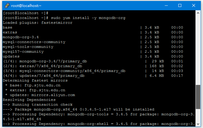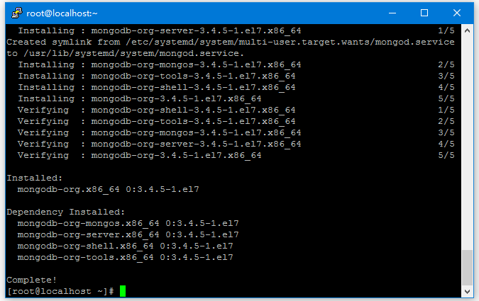 [root@localhost ~]# cat /var/log/mongodb/mongod.log