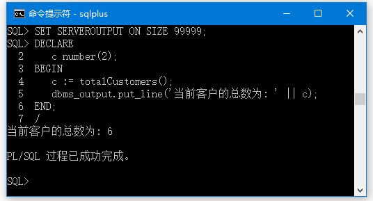 dbms_output.put_line('当前客户的总数为: ' || c);